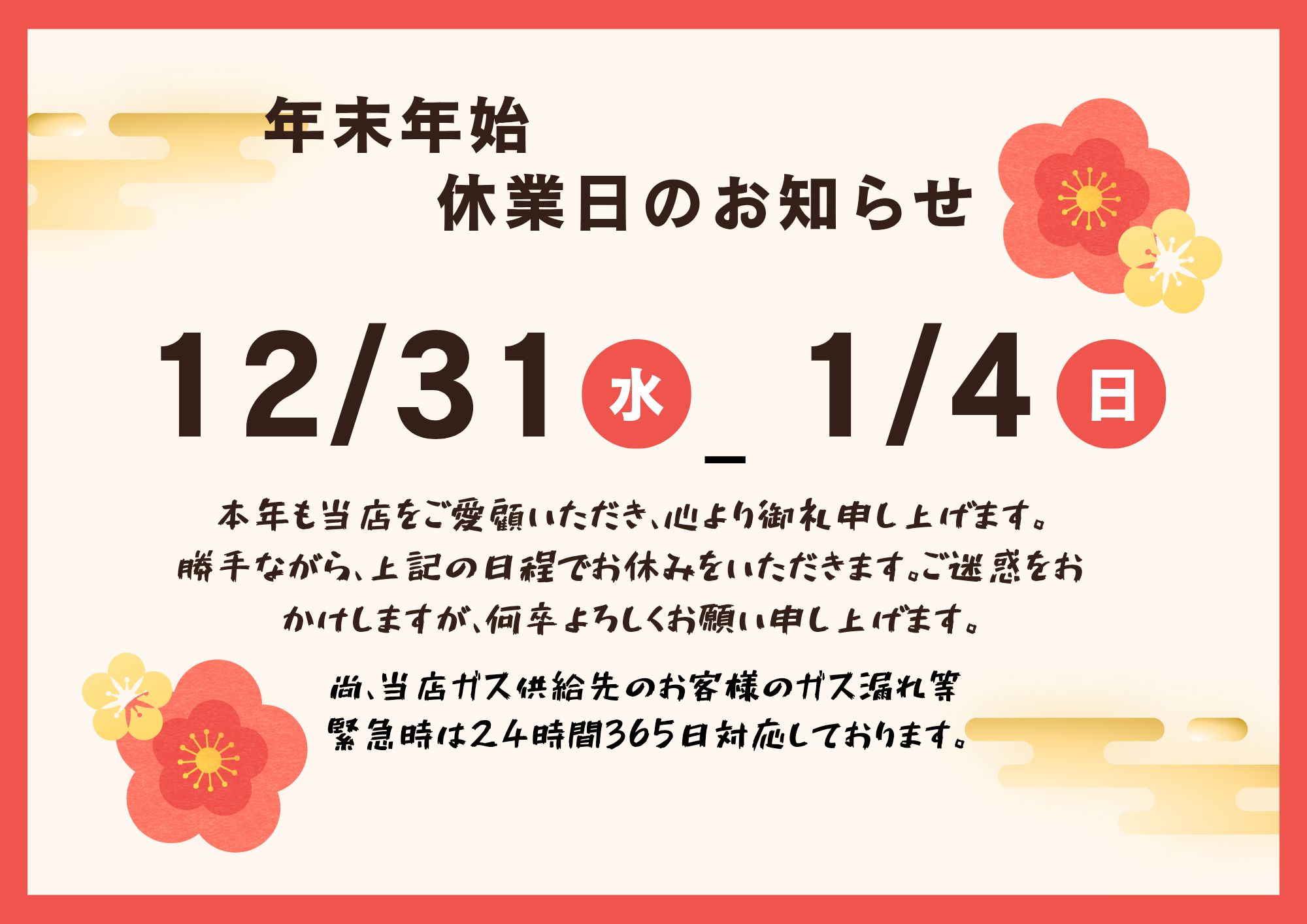 HOME > 赤と黄色のフラットな年末年始休業のお知らせ-ポスター_20251224_231415_00007635401432842654557.jpg赤と黄色のフラットな年末年始休業のお知らせ-ポスター_20251224_231415_00007635401432842654557.jpg2025年12月24日2025年12月24日